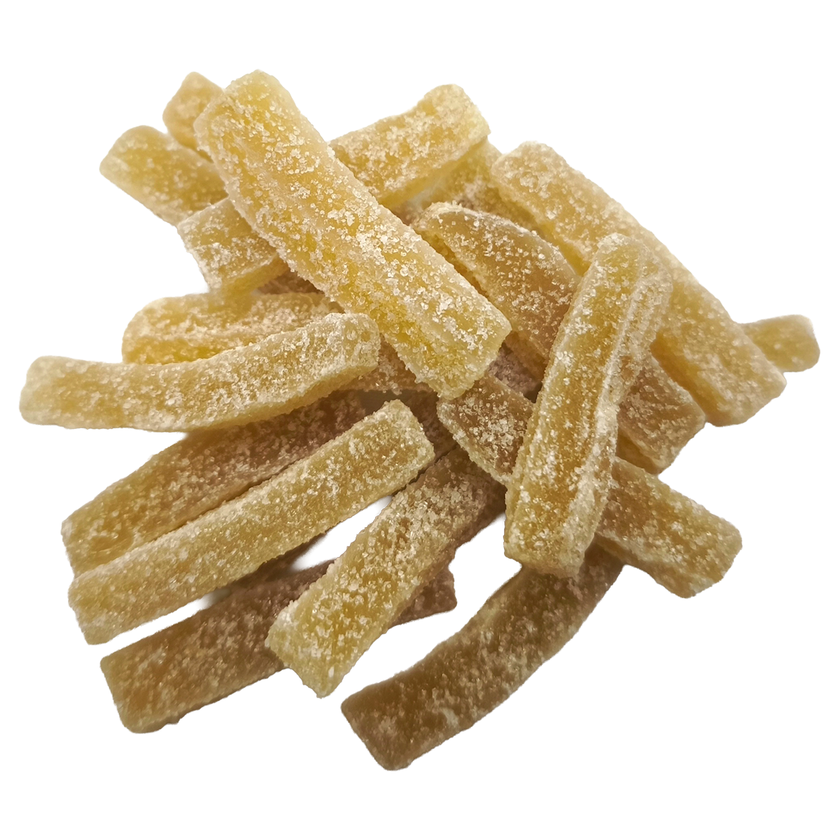 Ingwerstäbchen kandiert mit Rohrzucker, als leckere Knabberei, Energienahrung oder als Zusatz für den Tee